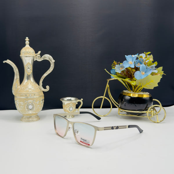 These square sunglasses feature a refined light gold frame paired with soft gradient lenses that transition smoothly between tones. The structured yet lightweight design creates a balanced look that feels modern without being aggressive, making it suitable for everyday wear.