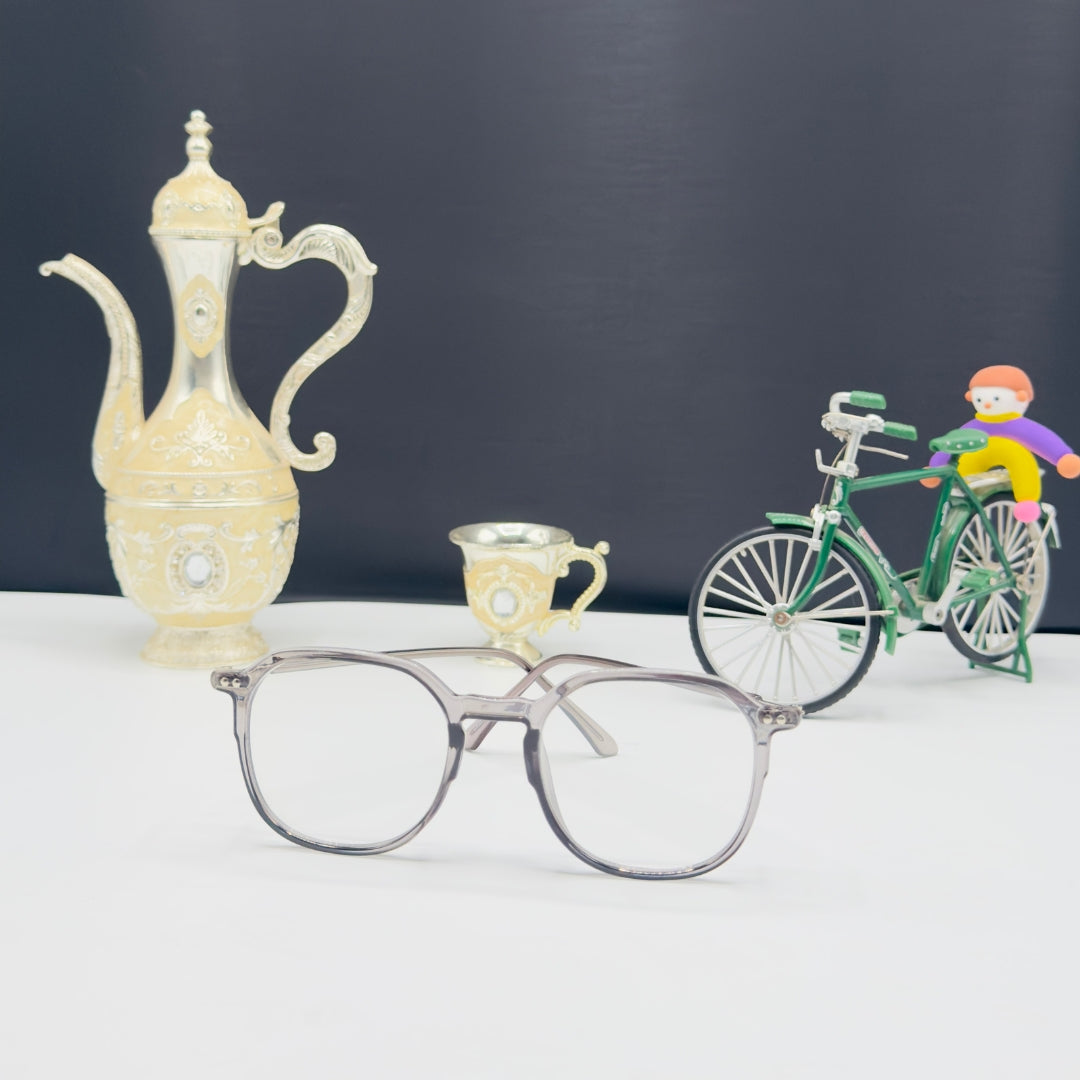 Translucent Charcoal Grey Finish: A premium, smoke-colored frame that adds depth and modern style without overpowering your facial features.